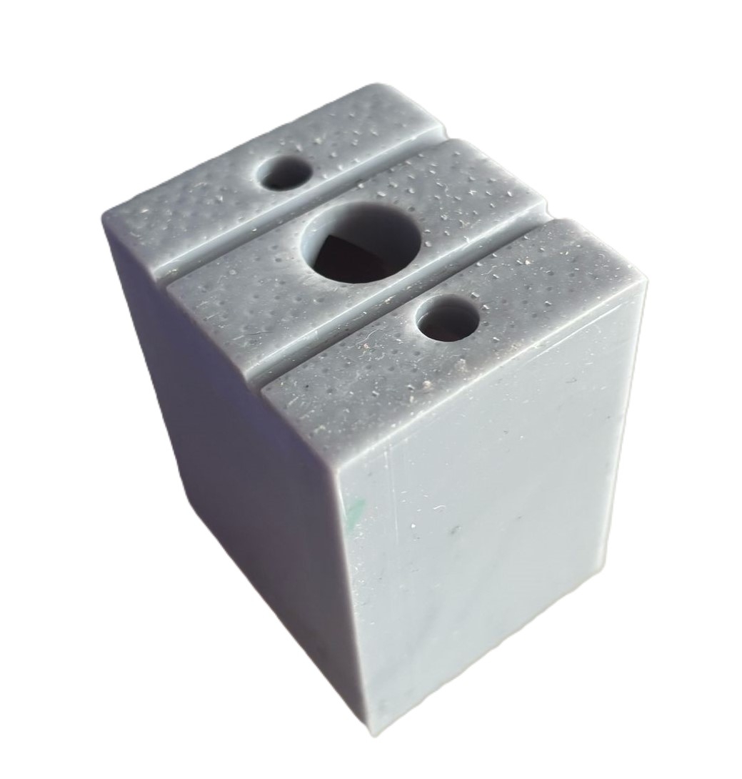 Posiada wcięcie na główki szyny oraz trzy wyjścia dla szutru.