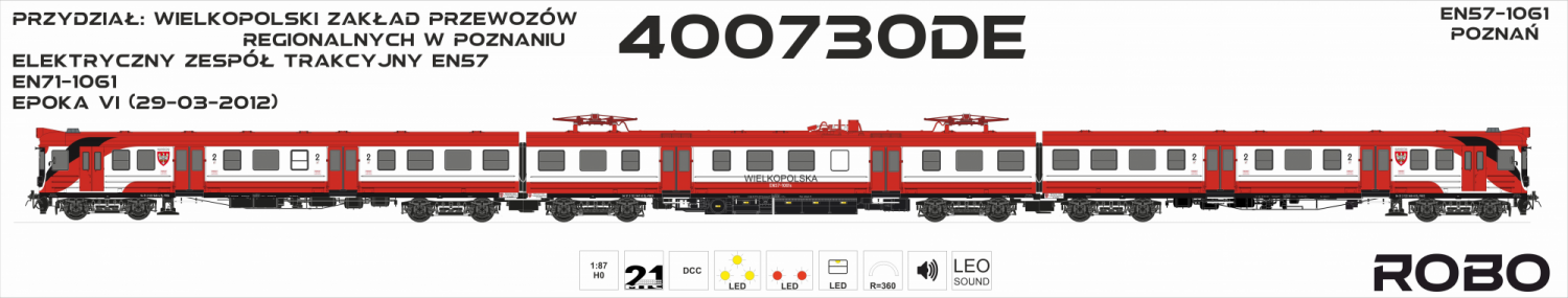 Model EN57-1061 przedstawia jednostkę, która we wrześniu 2007 roku została przemalowana w zakładach PESA Bydgoszcz S.A. w charakterystyczne czarno-czerwono-białe barwy z napisem „WIELKOPOLSKA”. Po modernizacji trafiła do zakładu Przewozów Regionalnych w Poznaniu.