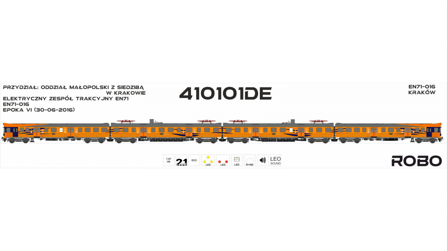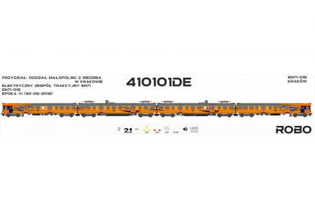 Model przedstawia skład regionalny R34803/2 na trasie Kraków Główny – Katowice, kursujący w 2019 roku. Jednostka została odwzorowana w jednym z najbardziej nietypowych i jednocześnie najbardziej rozpoznawalnych malowań elektrycznych zespołów trakcyjnych w Polsce. Jeszcze do niedawna możliwe było spotkanie odstawionych składów w tym malowaniu na stacji Przeworsk.