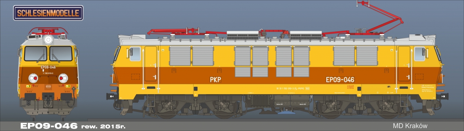 Model lokomotywy elektrycznej PKP Intercity EP09-046 w malowaniu z roku 2015, przydzielonej do Zakładu Południowego.