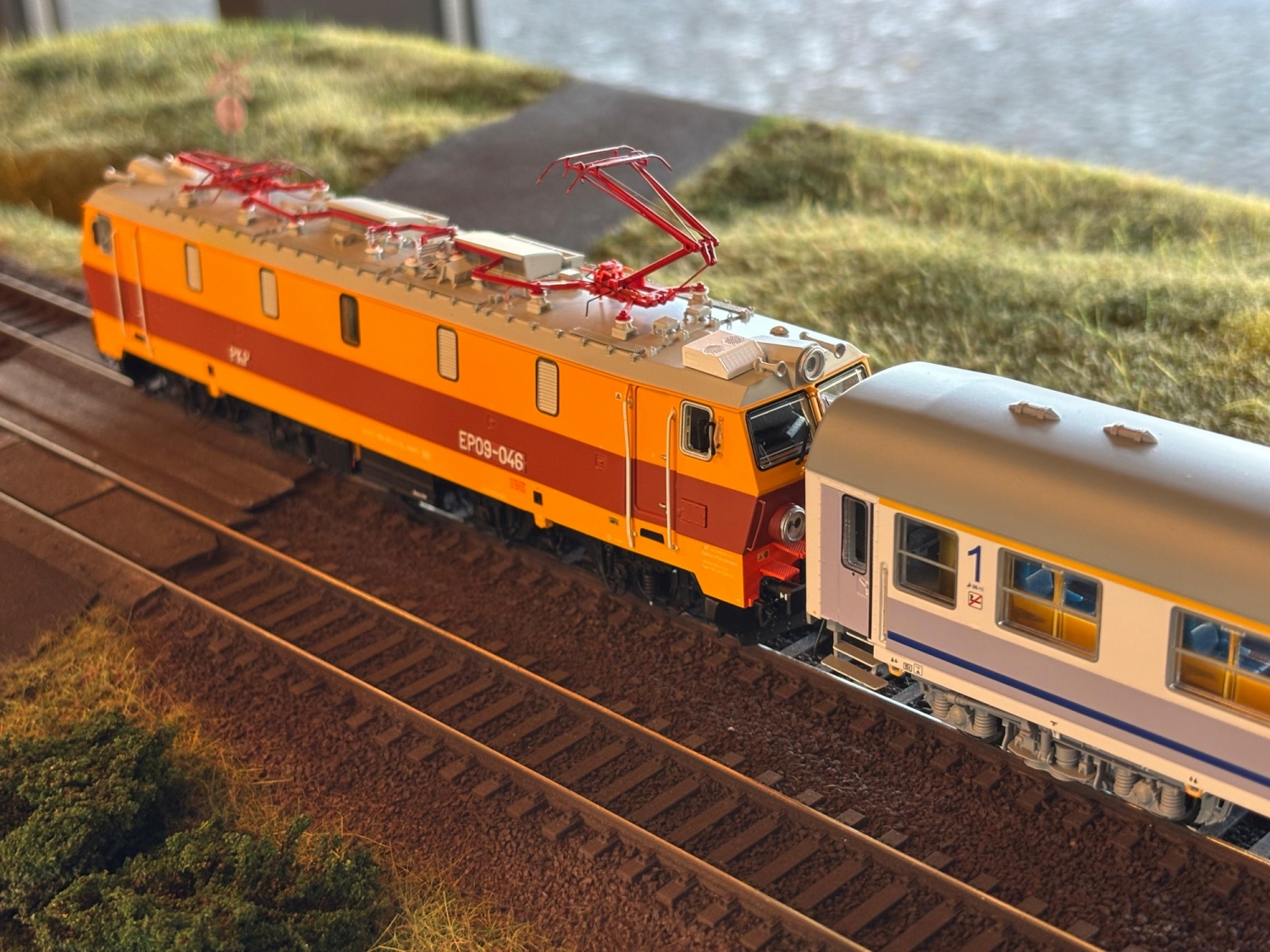 Model lokomotywy elektrycznej PKP Intercity EP09-046 w malowaniu z roku 2015, przydzielonej do Zakładu Południowego.