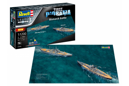 Zestaw modelarski Revell 05668 umożliwia stworzenie efektownego dioramatu przedstawiającego słynny pojedynek na Oceanie Atlantyckim między niemieckim pancernikiem Bismarck a brytyjskim HMS King George V. Model w skali 1:1200 idealnie nadaje się dla początkujących i średniozaawansowanych modelarzy.