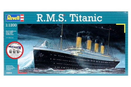 Ten plastikowy zestaw modelarski typu Starter Kit pozwala zbudować legendarny transatlantyk R.M.S. Titanic w skali 1:1200. Zestaw zawiera wszystko niezbędne do rozpoczęcia pracy — farby, pędzelek, klej oraz kalkomanie. Model oferuje szczegółowy kadłub, pokład i nadbudówki, a po złożeniu ma długość około 223 mm.