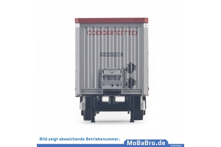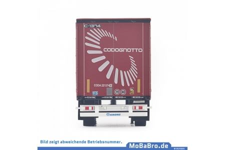 Model naczepy typu Krone Mega Liner w barwach firmy transportowej Codognotto, wykorzystywanej w transporcie intermodalnym.