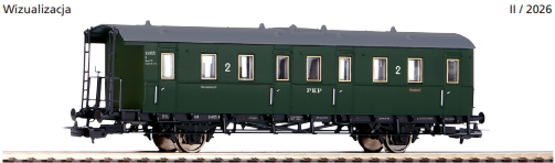 Model wagonu osobowego budowy saksońskiej 2. klasy w barwach PKP, z Epoki III. Wagony tego typu były wykorzystywane w ruchu pasażerskim po II wojnie światowej, głównie na trasach lokalnych i regionalnych, wywodząc się z konstrukcji kolei saksońskich.
