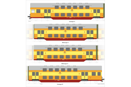 Model wagonów piętrowych PKP serii Bhp ze stacji Słupsk