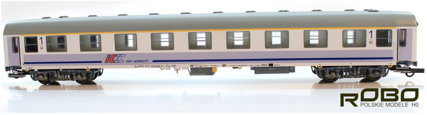 Model wagonu osobowego PKP Intercity 1 kl, typu 112A, Stacja Szczecin.
