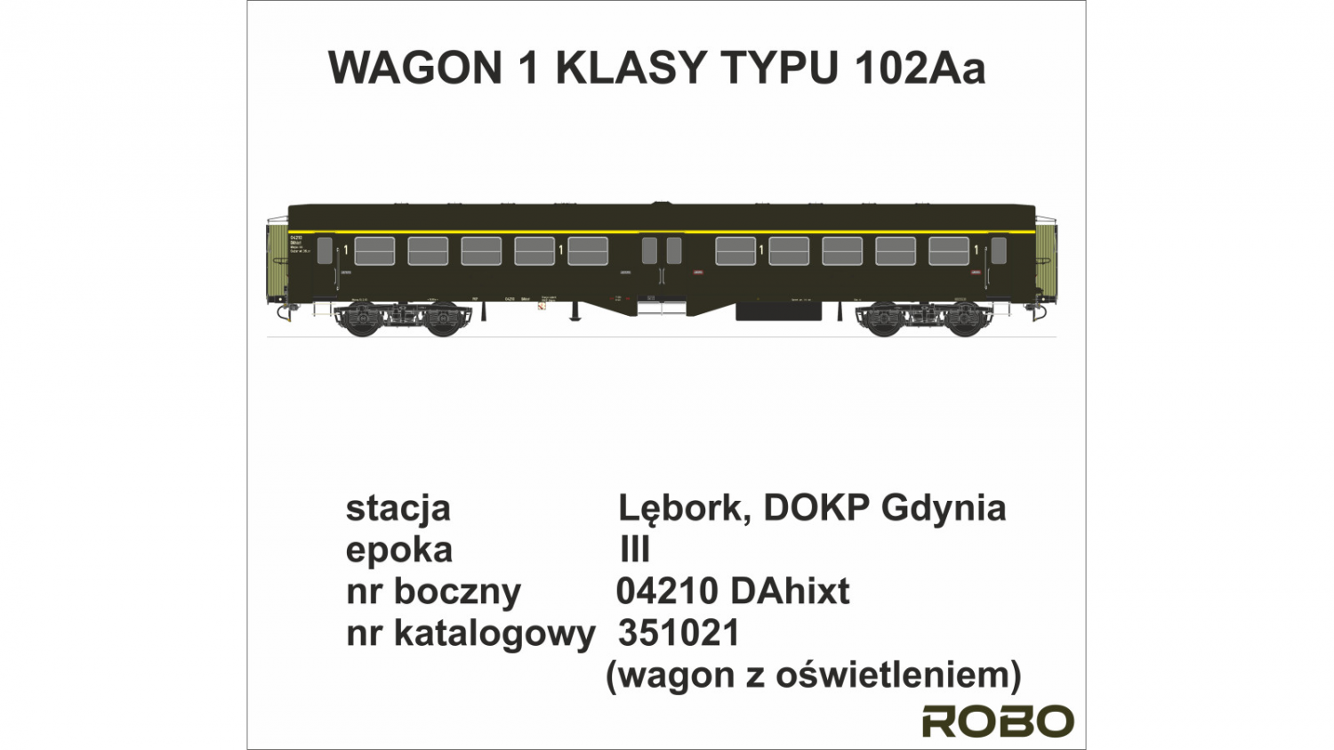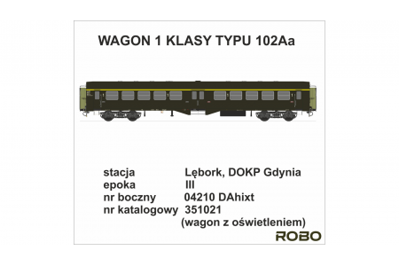 Model wagonu osobowego 1 klasy typu 102Aa „Ryflak” odwzorowujący skład ze stacji Lębork (DOKP Gdynia).