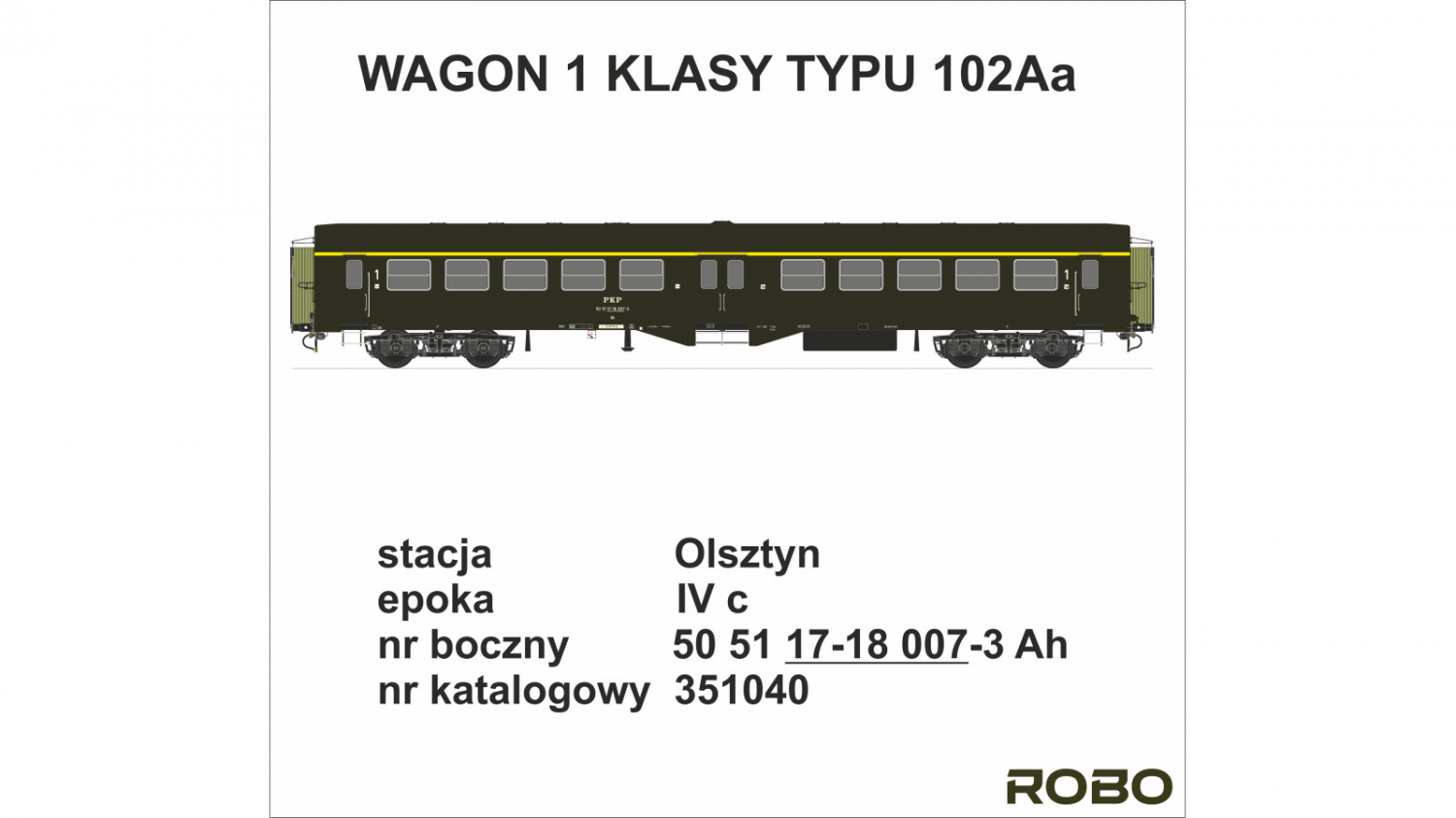 Model wagonu osobowego 1 klasy typu 102Aa „Ryflak” odwzorowujący skład ze stacji Olsztyn.