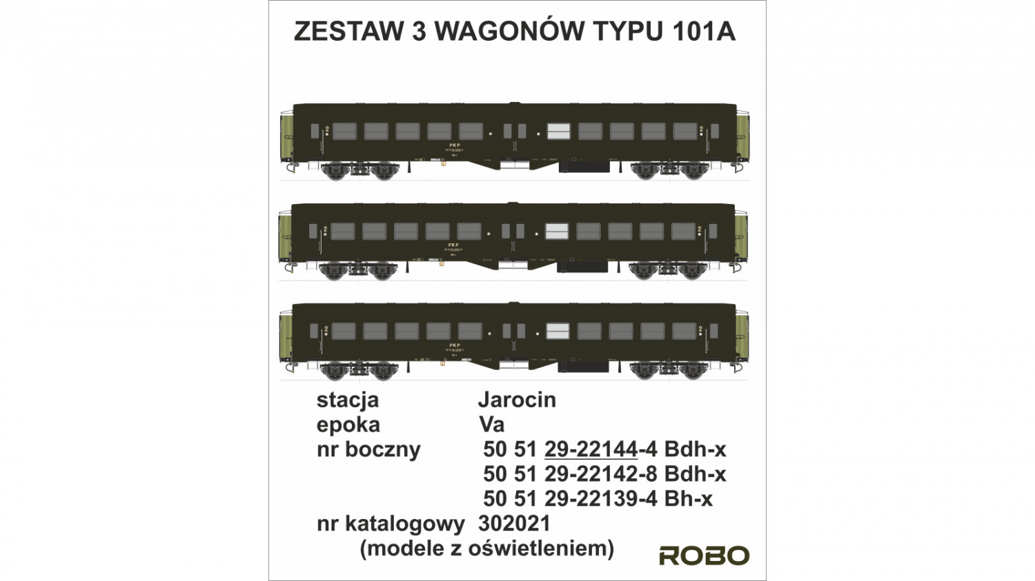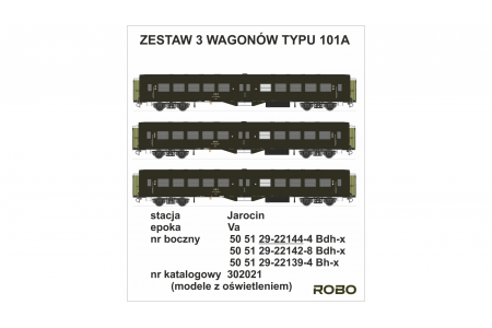 Zestaw wagonów 2 klasy, typu 101A "Ryflak". Stacja Jarocin. Modele z oświetleniem 2.0