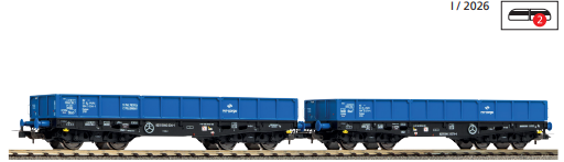 Model zestawu 2 węglarek typu Gondola 401Zb w barwach PKP Cargo, z Epoki VI. Wagony typu Gondola 401Zb służą do przewozu masowych ładunków sypkich, takich jak węgiel, żwir czy kruszywa, i są powszechnie wykorzystywane w nowoczesnym ruchu towarowym w Polsce.